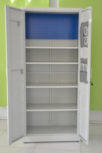 Wysoka szafa magazynowa to idealne rozwiązanie do stworzenia przestrzeni do przechowywania w biurze, warsztacie czy magazynie. 5 – poziomowa szafa została w całości wykonana z trwałej blachy malowanej proszkowo i wyposażono ją w:
