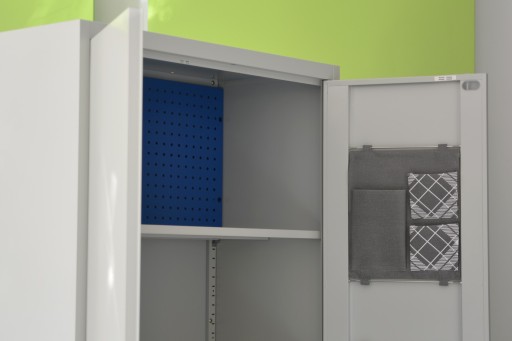 - Drzwi wyposażone w zamek ograniczający dostęp do zawartości szafy
