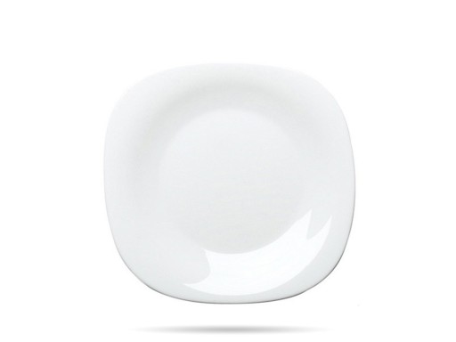 Talerz deserowy Bormioli Rocco. Mały talerz płytki, talerz śniadaniowy, talerz do dań mniejszych. Parma to gładkie, białe talerze ze szkła opal, są lekkie i wyjątkowo trwałe. Ciekawy kształt zaokrąglonego kwadratu i śnieżna biel atrakcyjnie wyeksponują serwowane dania.