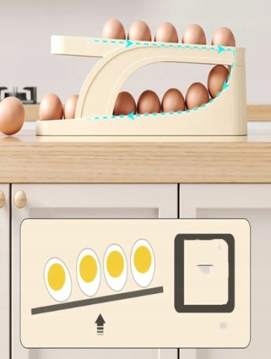 To inteligentne urządzenie pozwala na przechowywanie od 12 do 14 jajek w lodówce. Dzięki specjalnemu kształtowi oszczędzasz miejsce i zapewniając świeżość jajek. Organizer jest prosty w obsłudze i czyszczeniu. Zrobiony jest z grubego materiału, który nie ulega deformacji, ale jest lekki.