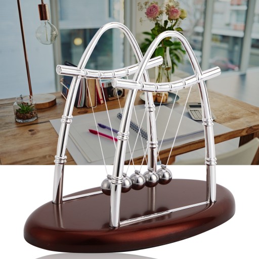 To urządzenie demonstruje zachowanie pędu i energii za pomocą serii kołyszących się kulek. Odciągnij jedną lub więcej piłek balansowych, puść je, a ta sama liczba piłek przesunie się w górę po przeciwnej stronie.