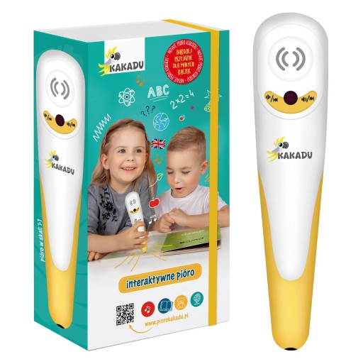 Interaktywne pióro KAKADU to wielofunkcyjne urządzenie, które odczytuje teksty i dźwięki zakodowane na stronach książek. To część innowacyjnego systemu nauki i zabawy w jednym. Dzięki niemu spotkanie z książką staje się prawdziwą przygodą. Teksty, odgłosy otoczenia, piosenki, polecenia, ciekawostki w nowatorski sposób rozwijają zmysły, pobudzają wyobraźnię, pomagają poznawać świat i języki obce. Pióro KAKADU wspiera proces nauki i kreatywność dziecka. To bardzo proste w obsłudze urządzenie zadziwia szerokim zakresem funkcji. Teraz pióro Kakadu jest jeszcze lepsze! Bardziej ergonomiczny kształt i przyjemna w dotyku antypoślizgowa powłoka zapewniają komfort użytkowania. Pióro interaktywne jest kompatybilne ze wszystkimi książkami oznaczonymi KAKADU. Pióro nie jest dołączone do książek. Dzięki bezpłatnym aktualizacjom oprogramowania współpracuje ze wszystkimi publikacjami KAKADU. Pióro jest kompatybilne z systemem WINDOWS. Opakowanie zawiera: - interaktywne pióro KAKADU z kartą micro SD 8 GB i wbudowaną baterią - kabel USB - ładowarkę - instrukcję użytkowania Aktualnie dostępne są następujące książki interaktywne KAKADU: Widzę, słyszę, poznaję. Zwierzęta domowe Widzę, słyszę, poznaję. Zwierzęta świata Widzę, słyszę, poznaję. Dźwięki wokół mnie Widzę, słyszę, poznaję. Dźwięki na spacerze Moje bajki. Wyszukaj i policz. Dookoła świata. Wyszukaj i policz Angielski słowniczek obrazkowy Pory roku Pierwsze litery Kim zostanę, gdy dorosnę? Boże Narodzenie z kolędami Wszystko gra! Poznajemy instrumenty muzyczne 500 słów i zwrotów. Angielski słowniczek obrazkowy cz. 1
