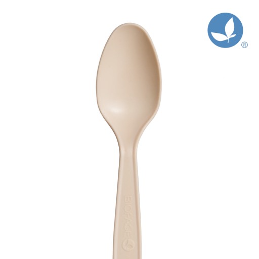 Beżowe łyżki o długości 16,3 cm, wykonane w 100% z pestek awokado