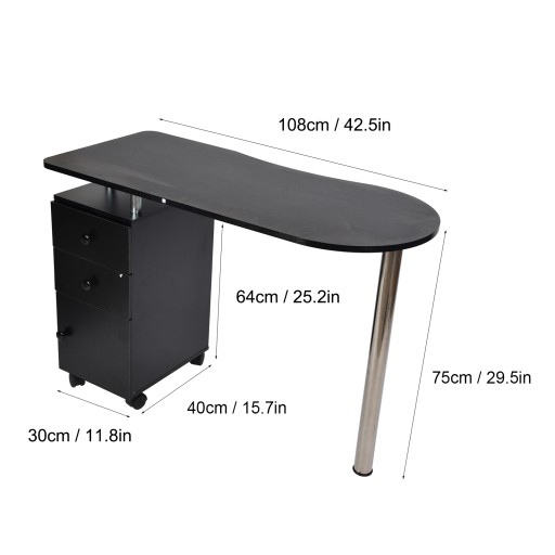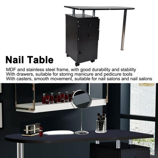 Стол для ногтей Портативный деревянный маникюрный стол с 1 дверью и 2 ящиками на колесах для Be