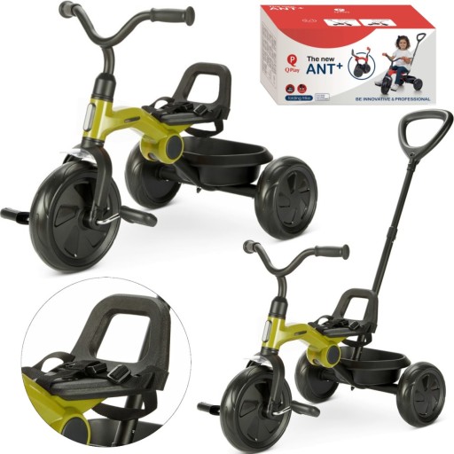 Трехколесный велосипед Qplay Ant Plus с зелеными колесами, регулируемые ремни для ручки