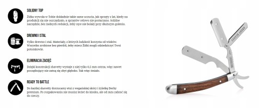 Shavetta Žižka od Angry Beards to tak jakby klasyczna brzytwa, korzystająca jednak ze zwykłych żyletek. Odpada dzięki temu potrzeba dbania o ostrze, natomiast rytualna satysfakcja z golenia pozostaje. Skierowana do mężczyzn, którzy cenią solidność i tradycję. Żadnych dodatkowych kolorów, żadnych uproszczeń, chroniących rękę przed zmęczeniem przy dłuższym goleniu. Po prostu solidny kawał żelastwa i drewna, który nie zawiedzie nas w potrzebie nawet po długim czasie użytkowania.