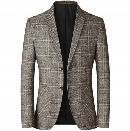 Męska marynarka Slim Fit 2 guziki w kratkę marynarka rekreacyjna sportowa marynarka