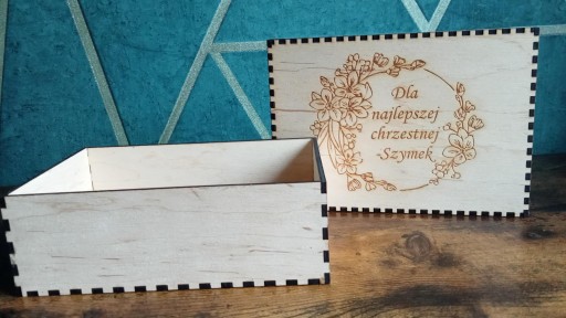 Przepiękna pamiątka z okazji Pierwszej Komunii Świętej. Drewniane otwierane pudełko na zdjęcie z podziękowaniem dla matki chrzestnej.