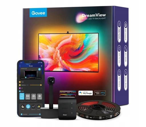 Podświetlenie telewizora Govee DreamView T1 jest idealne dla większości płaskich ekranów o przekątnej 75-85 cali. Zmień sposób oglądania ulubionych programów telewizyjnych dzięki dynamicznym kolorom wydobywającym się z każdego zakątka telewizora. To podświetlenie nie jest zoptymalizowane do pracy z zakrzywionymi telewizorami.