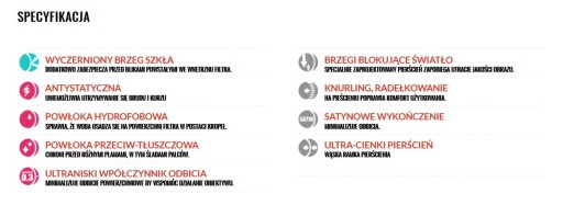 Tylko profesjonalne filtry posiadają wyczerniony brzeg szkła. Specjalna czarna farba naniesiona na szkło w miejscu jego odcięcia od tafli, gwarantuje skuteczną niwelację flar i refleksów które mogą się pojawiać w trakcie fotografowania w słoneczne dni lub w miejscach z silnymi bocznymi światłami.