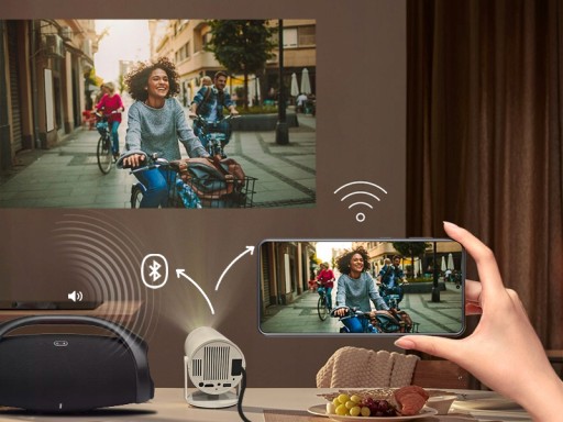 Dzięki wyposażeniu WiFi i Bluetooth projektor oferuje stabilną jakość połączenia. Szybka transmisja i niskie opóźnienie sprawiają, że odbierasz treści błyskawicznie. Ponadto, dzięki Bluetooth 4,1, możesz łatwo sparować głośniki lub słuchawki i cieszyć się doskonałym dźwiękiem.