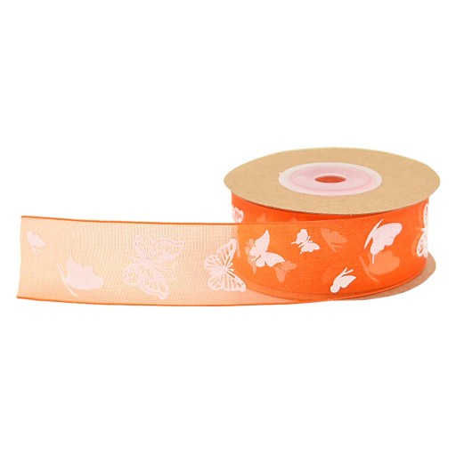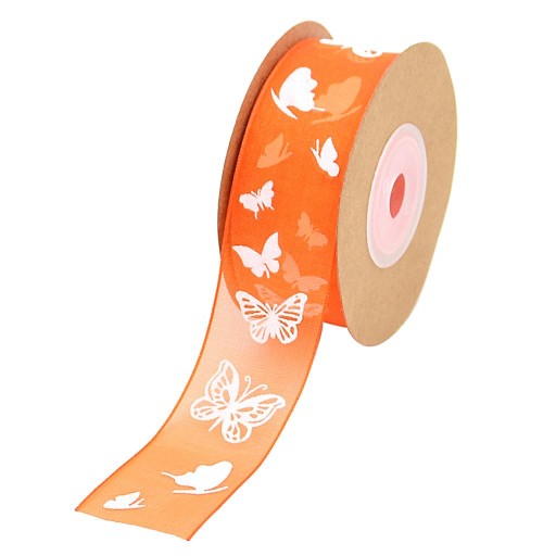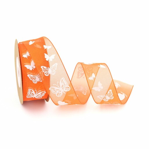Zdobienie z szyfonowej wstążki z nadrukiem motyla, eleganckie i piękne