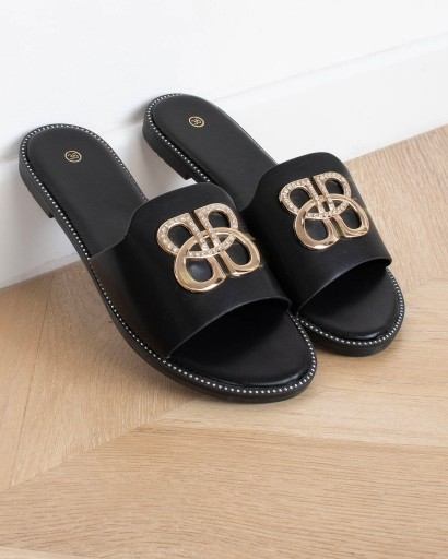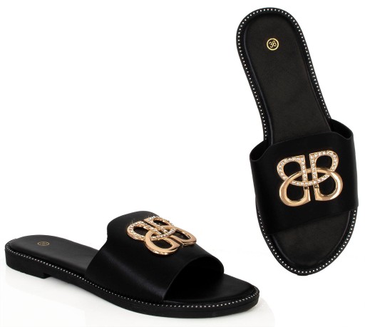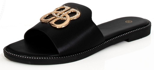 8172 CZARNE SKÓRZANE KLAPKI DAMSKIE OZDOBA 39