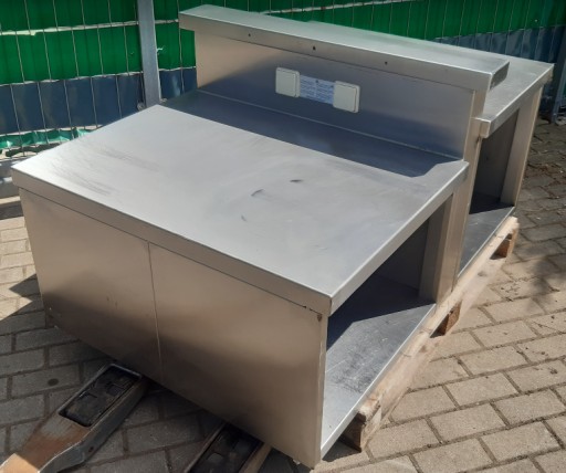 Stół roboczy o szerokości 143,5 ( jeden blat szeroki na 71cm a drugi 62cm) x wysokość blatów 76 oraz 59 oraz 51cm x 96cm głębokość. Stół spawany, solidny, niezniszczalny. Mogę zamontować 4 nogi, wtedy będzie o kilkanaście centymetrów wyższy.