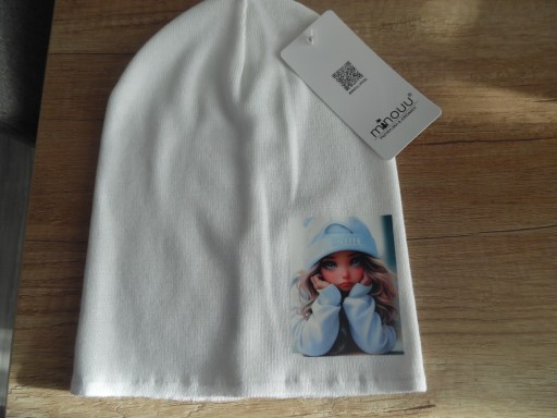 MINOUU КЛАССИЧЕСКАЯ ОДНОСЛОЙНАЯ ШАПКА С КУКЛОЙ АППЛИЦИЕЙ КОКОСОВОГО ЦВЕТА
