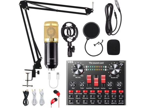 ZESTAW MIKROFON ALPOWL BM-800 + MIKSER KARTA DŹWIĘKOWA V8S Z REGULOWANYM STATYWEM I FILTREM POP