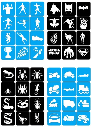 Cena z ogłoszenia dotyczy mixu 100szt. losowych szablonów spośród poniższych 31 zestawów szablonów