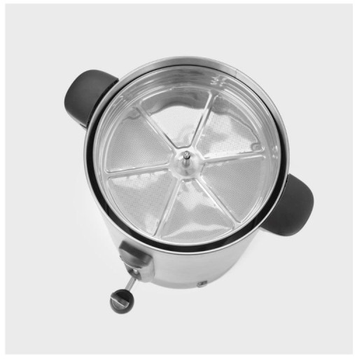 Urządzenie posiada jednościenny korpus ze stali nierdzewnej pokryty matową czernią ze stylowymi, polipropylenowymi uchwytami i pokrywą. Centralnie umieszczony kran zapobiega kapaniu, a szklany wskaźnik pokazuje poziom wody. Taca ociekowa mocowana za pomocą magnesu zapewnia łatwe opróżnianie. Lampka kontrolna sygnalizuje zakończenie procesu ogrzewania i ewentualną konieczność usunięcia kamienia. Naczynie filtracyjne ma wbudowany filtr do grubo zmielonej kawy, papier filtracyjny nie jest potrzebny. Perkolator utrzymuje kawę w temperaturze podawania po zaparzeniu.
