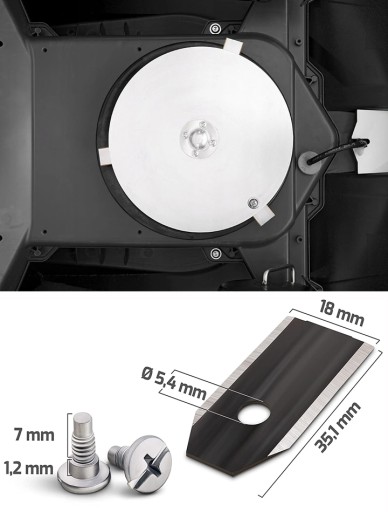 (Producenci Husqvarna™ Gardena™ zalecają wymianę oryginalnych noży na nowe po 3-4 tygodniach pracy).