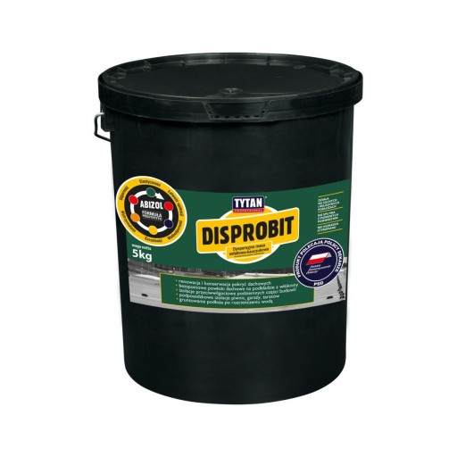 TYTAN PROFESSIONAL Disprobit Dyspersyjna masa asfaltowo-kauczukowa to masa asfaltowa modyfikowana kauczukiem syntetycznym, która przeznaczona jest do wykonywania poziomych i pionowych powłok przeciwwilgociowych oraz do renowacji i konserwacji pokryć dachowych. Masa asfaltowo-kauczukowa TYTAN charakteryzuje się możliwością stosowania zarówno na suchych, jak i wilgotnych podłożach. Dodatkowo nie zawiera rozpuszczalników, a tym samym nie uszkadza styropianu. Nie spływa też z pionowych powierzchni – nawet przy wysokich temperaturach. Co więcej, produkt ten tworzy bardzo elastyczną i wydajną powłokę (w przypadku gruntowania należy rozcieńczać wodą w stosunku 1:2). Ponadto masa od marki TYTAN przydatna jest do użycia w ciągu roku od daty produkcji. Disprobit Dyspersyjna masa asfaltowo-kauczukowa z serii TYTAN PROFESSIONAL posiada szeroki zakres zastosowań. Świetnie sprawdza się podczas generalnego remontu bądź wykańczania domu do rozmaitych powłok przeciwwilgociowych. Przede wszystkim gwarantuje perfekcyjne izolacje fundamentów – izolacje przeciwwodne ław i ścian fundamentowych. Dodatkowo umożliwia wykonanie izolacji podposadzkowych garaży, piwnic, balkonów bądź tarasów. Masa bitumiczna TYTAN nadaje się również do tworzenia bezspoinowej powłoki dachowej na podkładzie z papy, włókniny, tkaniny technicznej i tym podobne.