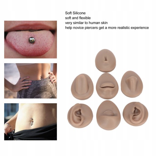 4. Wielokrotnego użytku: silikonowy model do ćwiczeń przekłuwania jest wielokrotnego użytku i może być używany wiele razy, aby pomóc początkującym przekłuwaczom uzyskać bardziej realistyczne wrażenia.