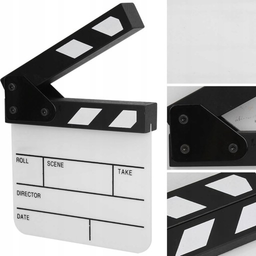 Dane techniczne: Stan: 100% nowy i w wysokiej jakości Materiał: akryl metal drewno Kolor: czarny / biały Rozmiar: około. 15x16.5x5 cm/5.9x6.5x2 caleWaga: Ok. 273gLista pakowania: 1 x Clap Board1 x długopis (kolor długopisu zależy od koloru tablicy, biała tablica z czarnym długopisem i czarna tablica z białym długopisem)
