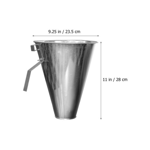 To jest lejek ze stali nierdzewnej. Stożkowa konstrukcja, wykorzystująca wytrzymały materiał ze stali nierdzewnej, antykorozyjna, trwała. Faza jest okrągła i gładka, nie powoduje wtórnych zarysowań i utrzymuje nienaruszoną skórę kurczaków, kaczek i innego drobiu.