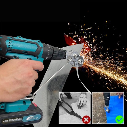 Uwaga: Produkt zawiera tylko zestaw(Końcówka do cięcia blachy), a nie wiertarka akumulatorowa.