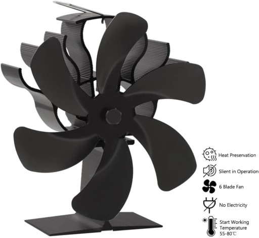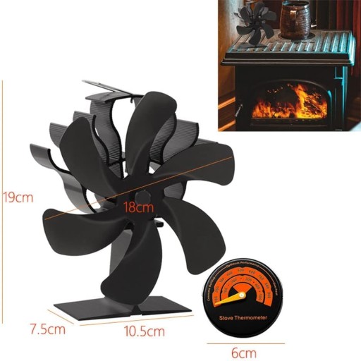 - Moc cieplna: Wentylator kominkowy jest zasilany ciepłem kominka lub pieca kominkowego bez zasilania, co może prowadzić do większego komfortu i zmniejszenia zużycia drewna piecowego o 28%. Wydajniej rozprowadzaj ciepło i oszczędzaj paliwo, co jest przyjazne dla środowiska.