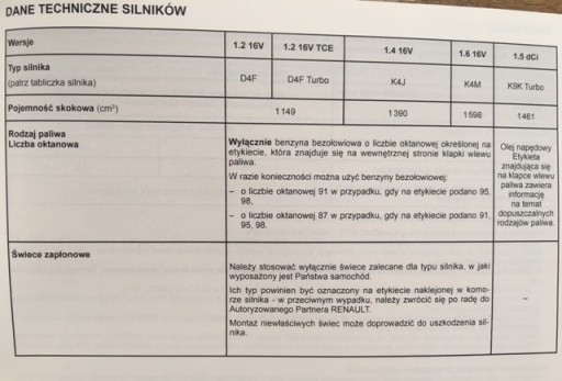 - silniki benzynowe 1.2/ 1.4 / 1.6 / i diesel 1.5 dci