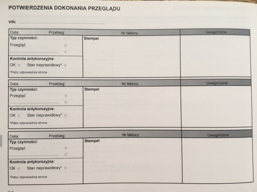 - instrukcja zawiera książkę serwisową, czystą, niewypełnioną