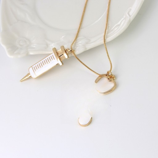 ✅ Nowatorski i niepowtarzalny naszyjnik ze strzykawką ze stetoskopem medycznym, modny i stylowy.