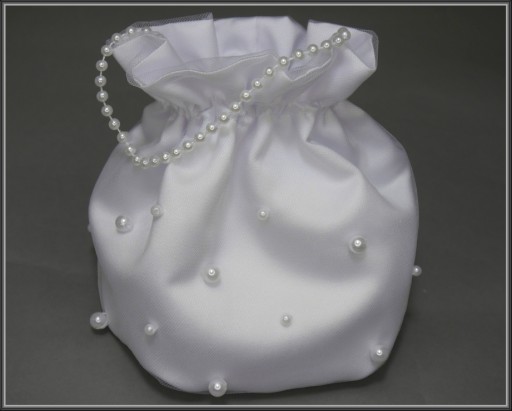 Komplet komunijny: okapnik z taśmy satynowej premium i tiulu, rękawiczki zakładane na jeden paluszek i torebka trzywarstwowa z satyny pierwszego gatunku, tiulu i podszewki z ręcznie przyszytymi perełkami w dwóch rozmiarach. Torebka posiada wkładkę pomagającą w zachowaniu kształtu woreczka nawet po jego obciążeniu. Na pozostałych aukcjach można kupić każdy produkt osobno lub w innym zestawieniu.