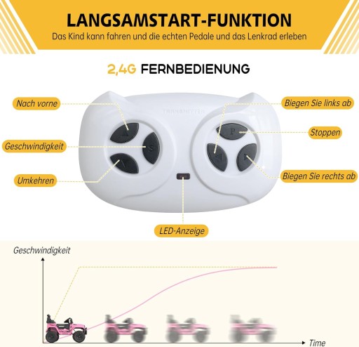 🚙WIELOFUNKCYJNA KONSOLA STEROWANIA: Łatwe uruchamianie za pomocą jednego przycisku. Ten elektryczny samochód dla dzieci jest wyposażony w głośnik Bluetooth, klakson, reflektory oraz funkcję wysokiej/niskiej prędkości, dzięki czemu dzieci mogą cieszyć się prawdziwymi wrażeniami z jazdy tym samochodem.