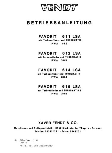 Инструкция по эксплуатации FENDT Фаворит LSA 611 612 614 615