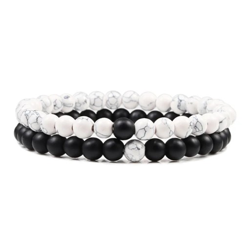 Zestaw bransoletek dla par odległość czarny biały naturalny kamień lawowy