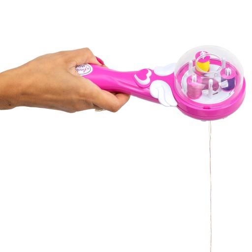 Hair Machine precyzyjnie oplecie pasma włosów kolorowymi nićmi, a dołączone do zestawu koraliki wykończą fryzurę nadając jej niepowtarzalnego efektu.