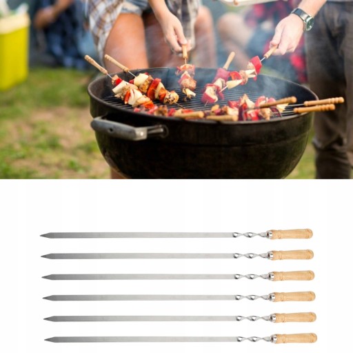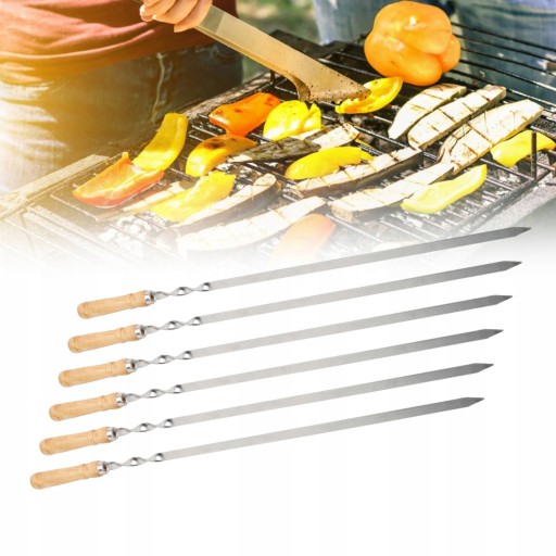 Specyfikacja: Stan: 100% nowy! Typ artykułu: kije do grilla Materiał: drewniany uchwyt stal nierdzewna Całkowita długość: Ok. 55 cm / 21,7 cala Waga: Ok. 560g/19.8 uncji Zastosowanie: grill Lista pakietów:6 x szpikulec