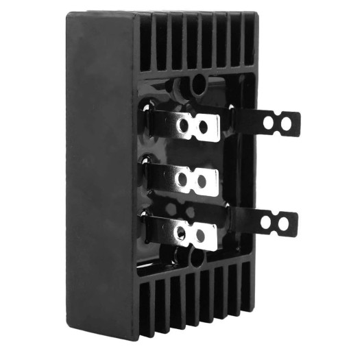 Jest skutecznym rozwiązaniem w układach wymagających konwersji trójfazowego sygnału zasilania prądu zmiennego na prąd stały przy jednoczesnej obsłudze wysokich napięć i dużych prądów. Mostek wygodny w instalacji, posiada 2 otwory montażowe.
