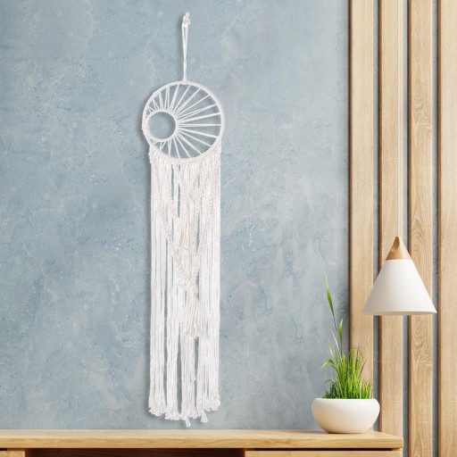 [DURABLE MATERIAL]: This macrame wall hanging art is made of high quality cotton and iron, very strong and durable; gorgeous, and eco friendly decor, suitable for indoor use.