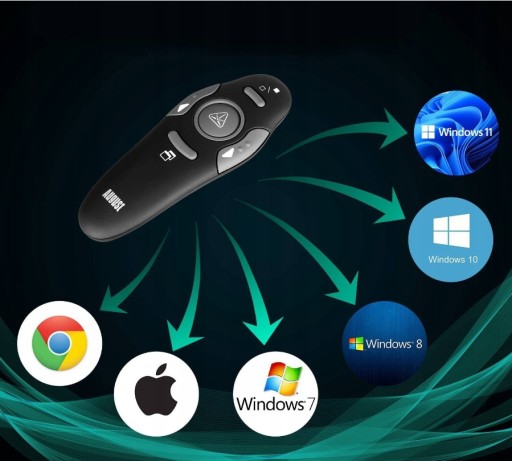 Wskaźnik działa na zasadzie Plug & Play, wystarczy podłączyć urządzenie do komputera. Nie musimy instalować żadnego dodatkowego oprogramowania do poprawnego działania. Pilot jest kompatybilny z takimi systemami operacyjnymi jak: Windows 7/2000/XP/Vista, Mac OS, Linux.