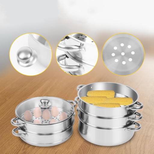 5-СЛОЙНАЯ КУХОННАЯ ПАРОВАРКА, НЕРЖАВЕЮЩАЯ СТАЛЬ, СО СТЕКЛЯННОЙ КРЫШКОЙ