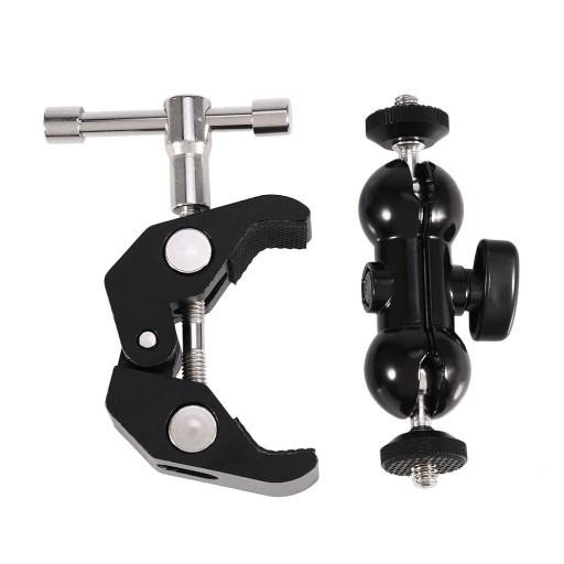 2. Podwójne mocowanie głowic kulowych jest elastyczne i wytrzymałe, można je ustawić w dowolnej dokładnej pozycji, której potrzebujesz, pokrętło może dokręcić blokadę, aby zamocować głowicę kulową bez potrząsania
