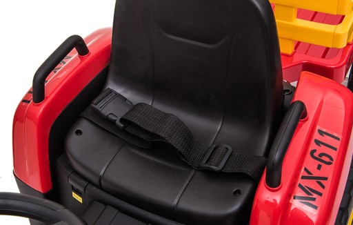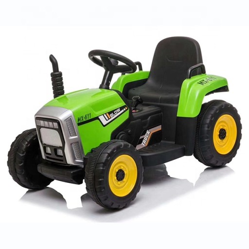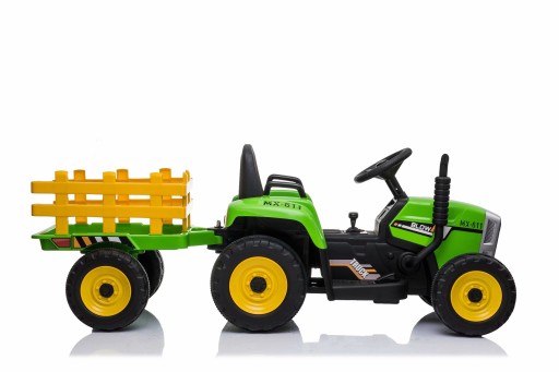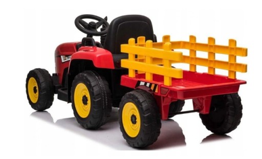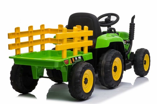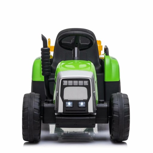 Traktorek na akumulator. Napęd zapewniają mu dwa potężne silniki elektryczne, zasilany akumulatorem o pojemności 12V4.5Ah. Na wyposażeniu pojazdu znajdują się uruchamiane przyciskami efekty dźwiękowe, wejście USB na pendrive, regulator głośności, światełka LED. Dostępne są 3 prędkości poruszania. Bezpieczną naukę jazdy zapewnia dołączony najnowszy pilot zdalnego sterowania 2.4G, dający rodzicowi pełną kontrolę nad pojazdem. Odpinana przyczepka.