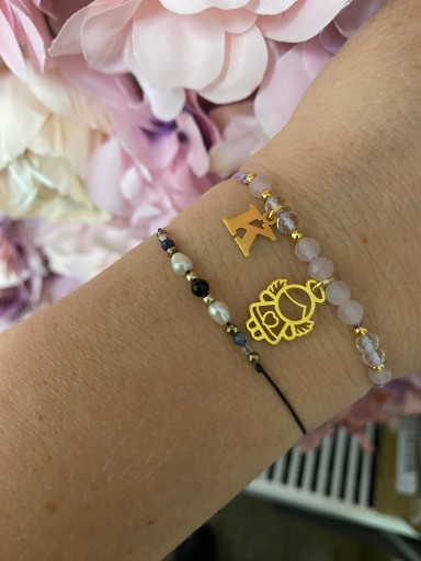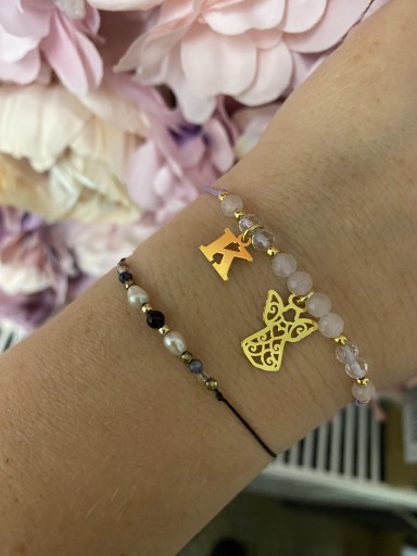 Bransoletka sznurkowa aniołek z dowolną literką