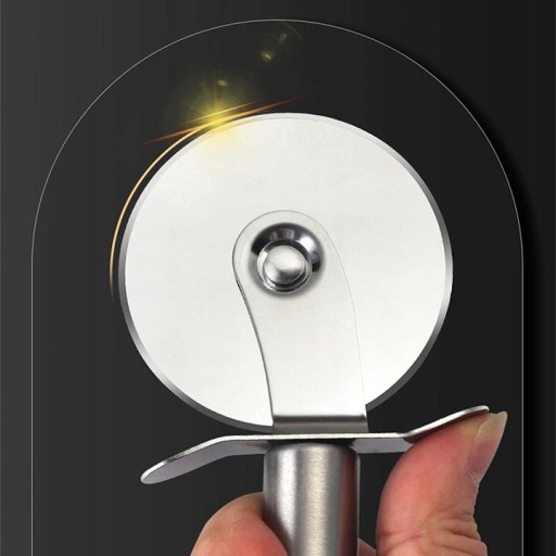 Wygodny okrągły nóż, wykonany ze stali nierdzewnej do pizzy z dużą średnicą ostrza sprawdzi się w każdej kuchni.