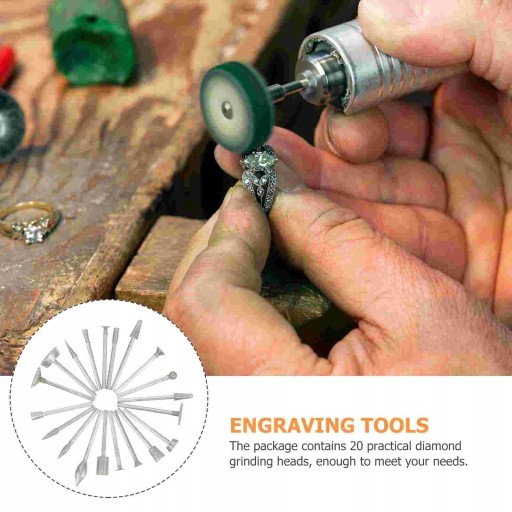 20Pcs Durable Sturdy Polishing Tools Stone Carving Accessories Diamond Burr Bits DescriptionThese diamond grinding heads are made of carefully selected materials, which are sturdy and will not be easily damaged. Great for carving and cutting on many kinds of materials, suitable for home improvement and craft. A nice helper for you to polish, grind, drill, cut, engrave and more.Features- Color: As shown.- Material: Emery.- Size: About 1.50X1.50X4.40cm/0.59X0.59X1.73inch.- Made of high grade materials, wear resistant and firm, durable and long service life.- Professional and practical design with beautiful appearance, easy to carry and use. - Allowing them to be compatible with most rotary tools as you finish, grind, and shape your work with precision. - Able to engrave on a wide range of materials including: wood, acrylic, PVC, plastics, etc. - Style different bit can reach more carving, great for all types of detail work.20 x grinding bits