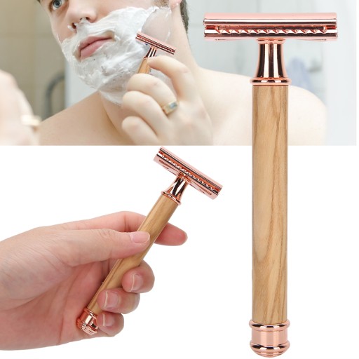 Двусторонняя ручная бритва с деревянной ручкой.