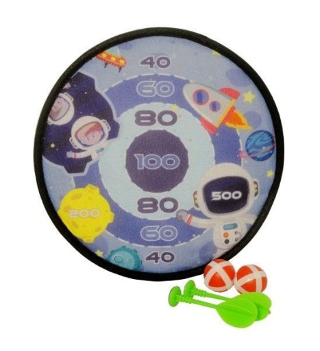 Zabawka tarcza na rzep z kosmicznym motywem wraz z 2 strzałkami i 2 piłkami. Stań do walki i sprawdź ile punktów dziś zdobędziesz. Zabawka pomaga rozwijać celność i sprawność u dzieci. Produkt zapakowany w przezroczysty worek. Zabawka przeznaczona dla dzieci od 3 roku życia. Podane wymiary są wymiarami opakowania.