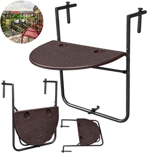 ⭐STOLIK BALKONOWY STÓŁ SKŁADANY KAWOWY WISZĄCY ZAWIESZANY BRĄZOWY⭐